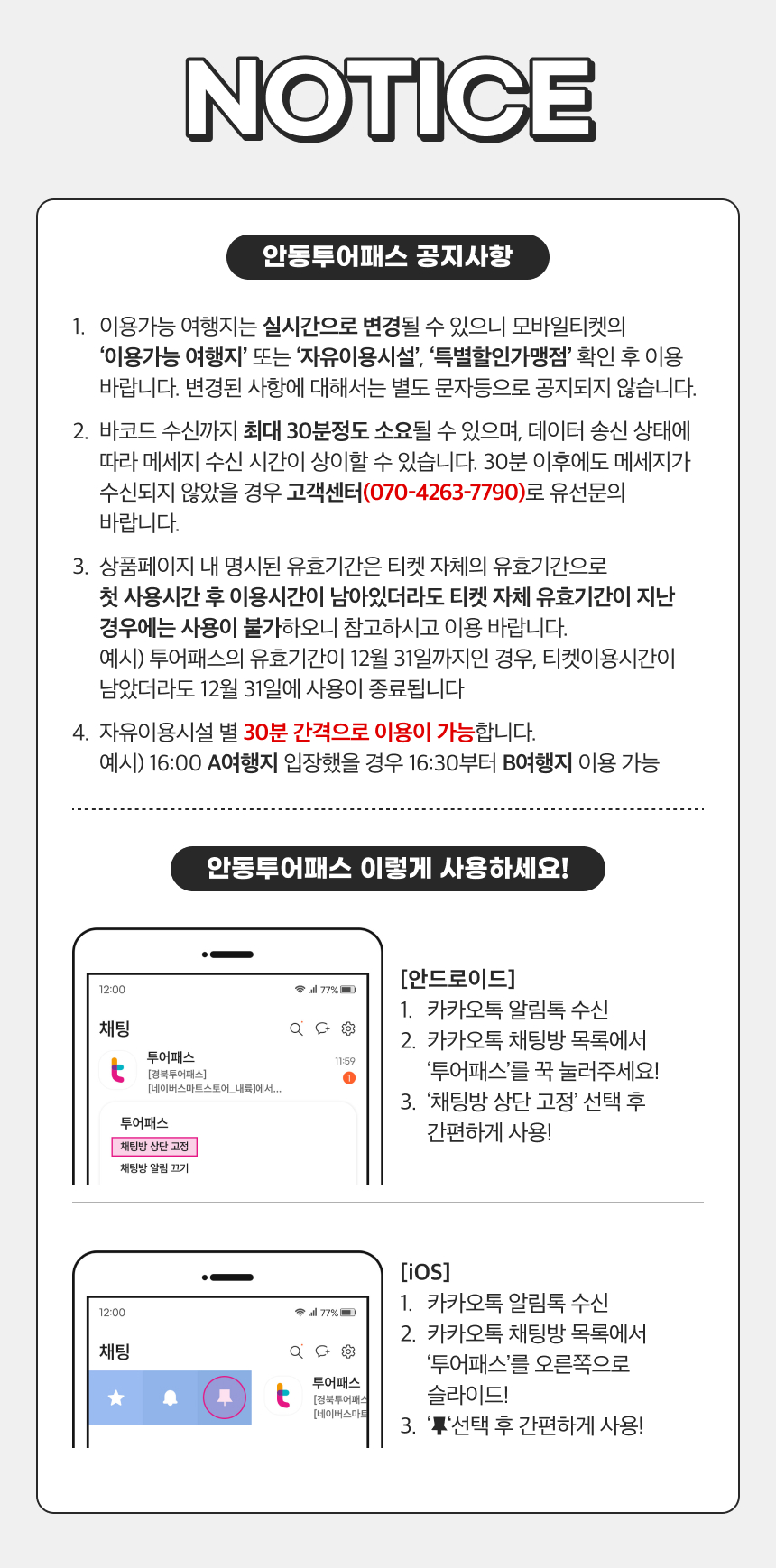 1. 본사에서 판매하는 관광 상품은 고객님 자택으로의 배송이 아닌, 모바일 티켓(카카오톡)으로 발송됩니다.