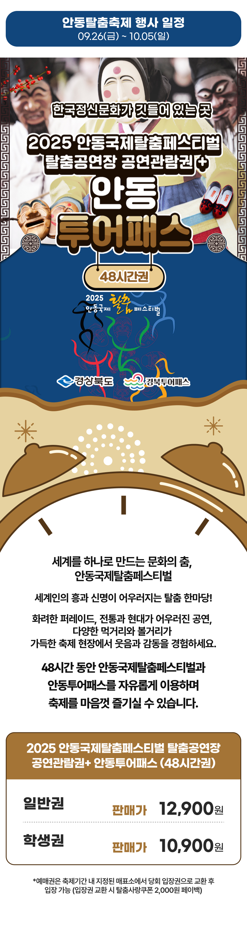 | 1. 구성 상품 | 안동투어패스+2025 국제탈춤축제 공연관람권 PKG | 2. 제조사 | (주)엘에스컴퍼니 |